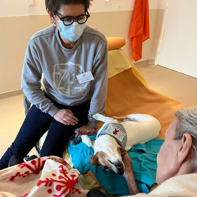 Aujourd’hui, une vingtaine de bénévoles interviennent régulièrement à Paris et en région parisienne. Chaque binôme, composé d’un maître et de son chien, est affecté à un établissement proche de son domicile et effectue des visites individuelles de 1h30 toutes les deux semaines. Ces rencontres permettent de tisser une relation de confiance et d’apporter un véritable moment de bien-être aux résidents. La présence d’un chien favorise l’apaisement, réduit l’anxiété et crée des échanges spontanés et chaleureux.