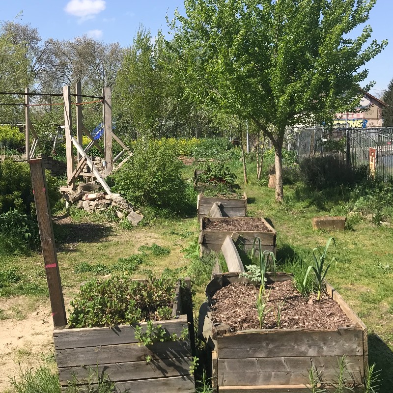 - Créer une nouvelle zone de culture en bacs (plantes potagères et florales) à proximité de la serre géodésique, avec l’installation d’une arrivée d’eau pour un système d’irrigation goutte à goutte.